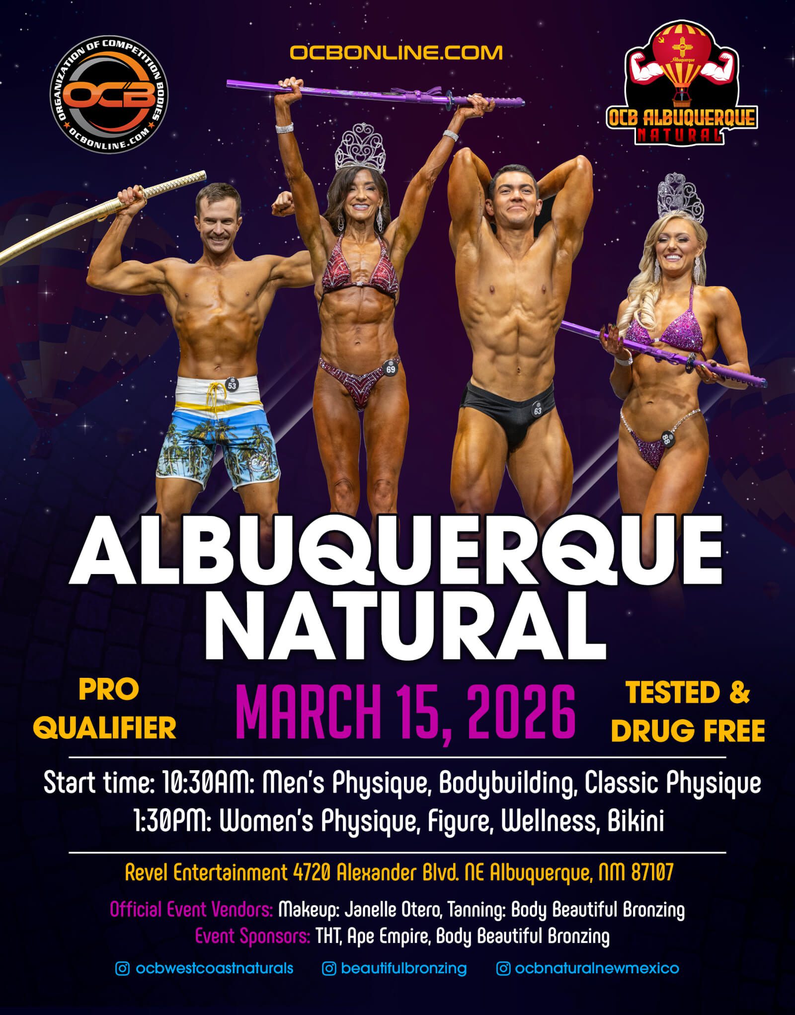 Founded in 2003, the OCB is the world’s largest all natural bodybuilding organization, hosting over 130 events yearly. OCB’s success comes from well-organized, fun competitions that prioritize drug testing, ethical judging practices, and professionalism.